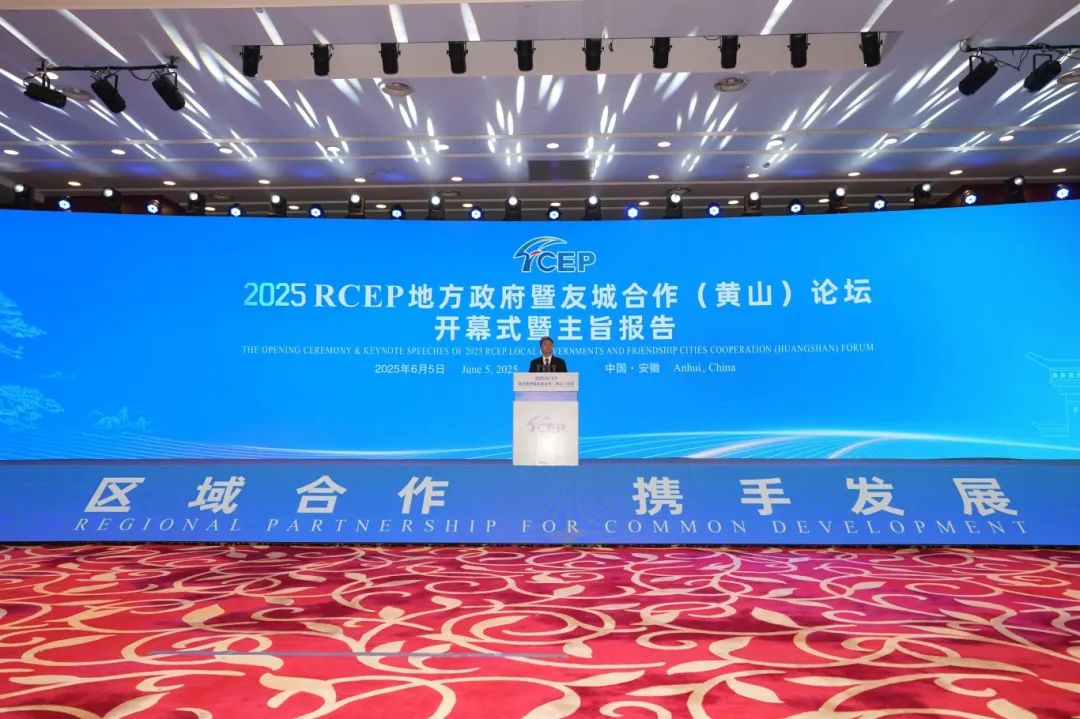 6月5日,由中國人民對外友好協(xié)會、安徽省人民政府主辦,中國-東盟中心、中國公共外交協(xié)會協(xié)辦的2025 RCEP地方政府暨友城合作(黃山)論壇于6月5日在黃山市隆重開幕,來自RCEP成員國的貴賓來客再次齊聚新安江畔,共同講好RCEP故事、增進合作共識。安徽叉車集團黨委委員,安徽合力股份有限公司黨委副書記、董事、總經(jīng)理周峻率隊參會,并受邀出席本屆論壇開幕式。